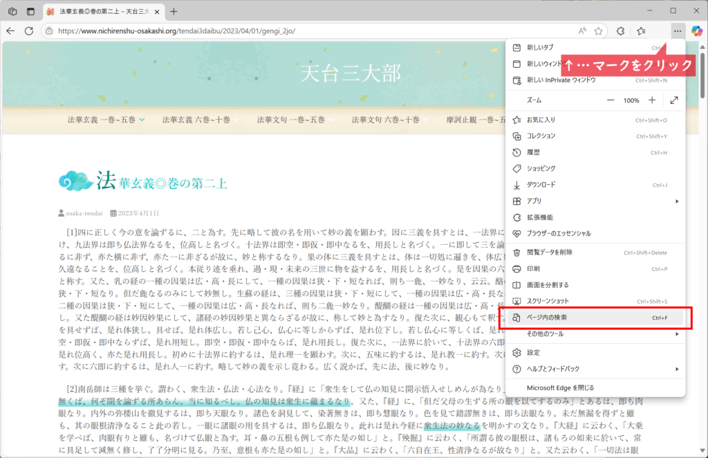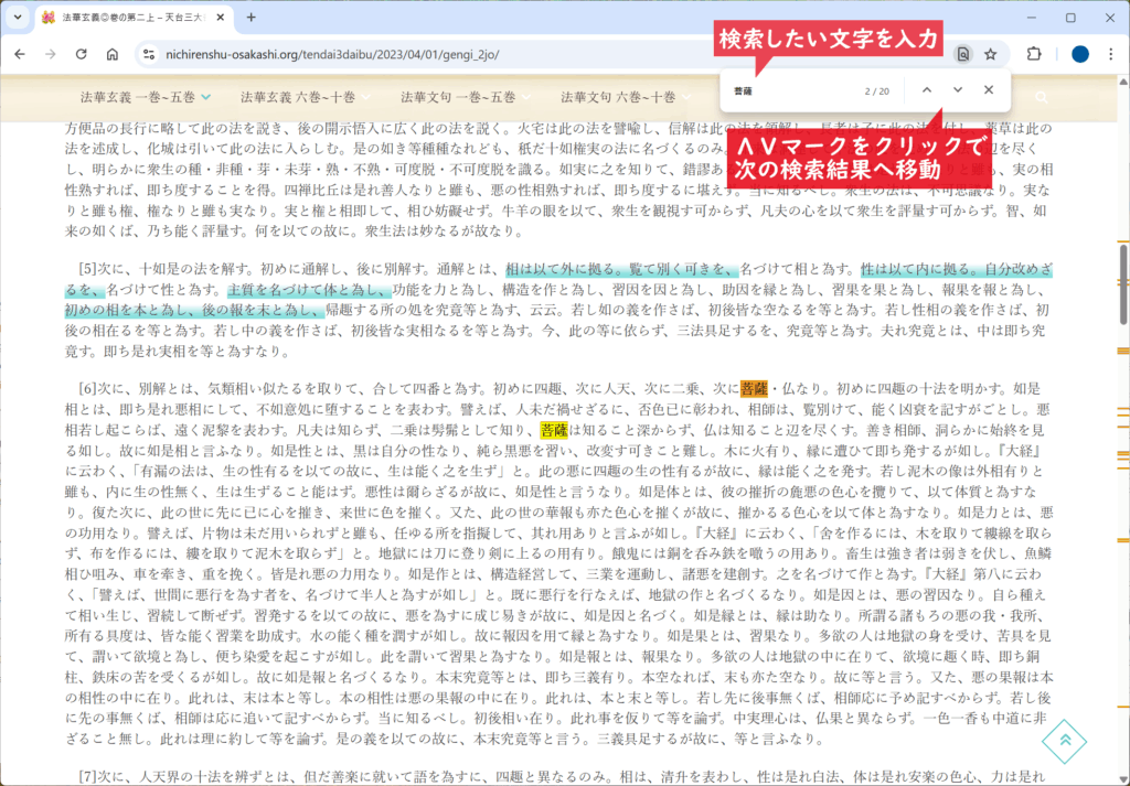 検索したい文字を入力すると、ページ内にその語句があればハイライトされます。