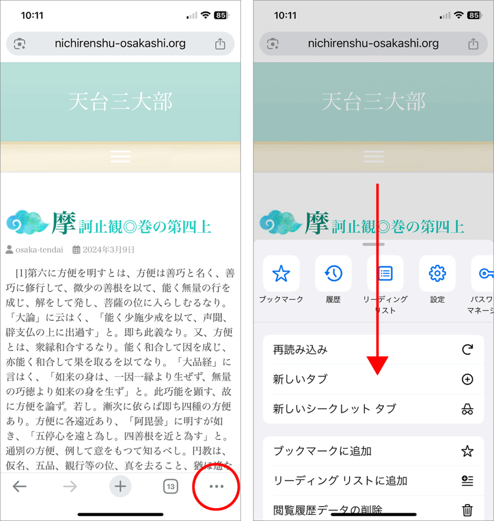 画面右上にある「…(縦)」のマークをタップすると、別ウインドウが表示されます。